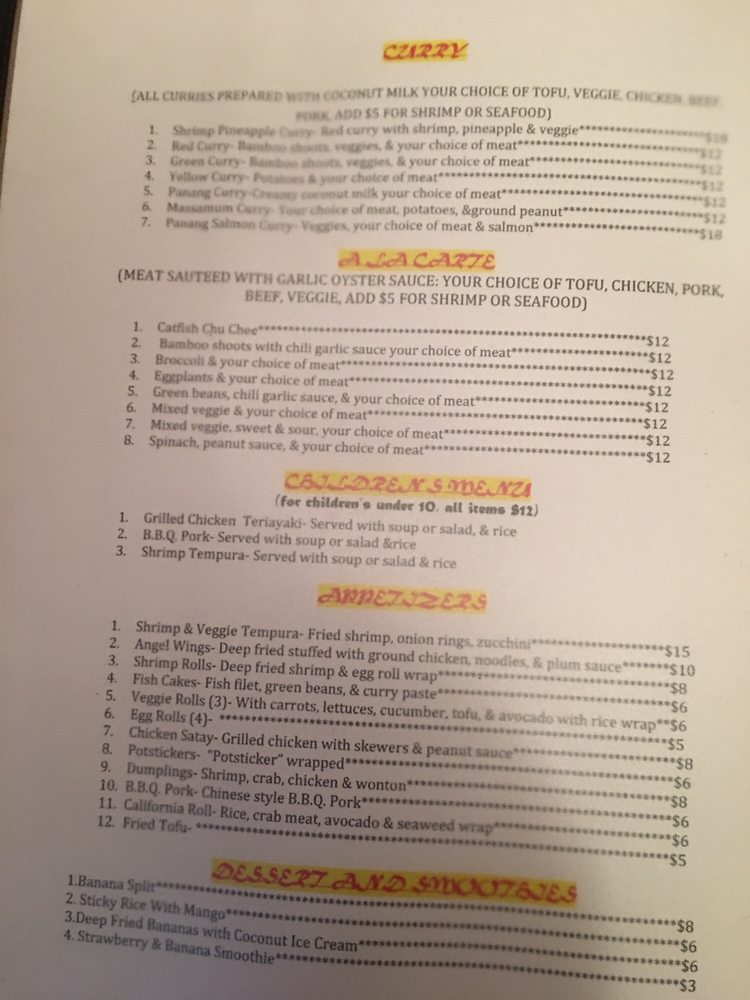 - Curry Lovers: Indulge in their flavorful Shrimp Pineapple Curry or the classic red curry with your choice of meat.